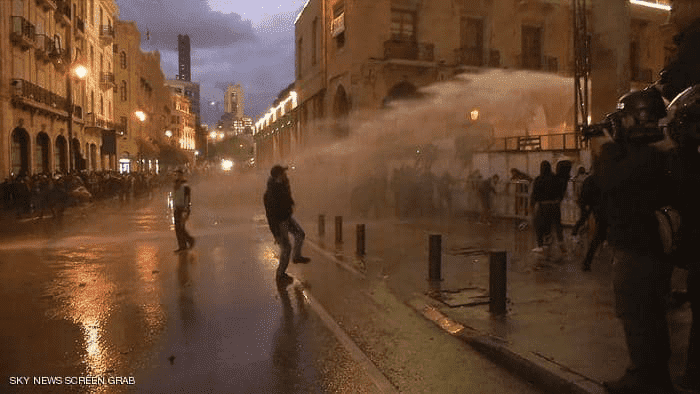 واستخدمت قوات مكافحة الشغب خراطيم المياه لإبعاد المتظاهرين عن محيط مجلس النواب اللبناني.