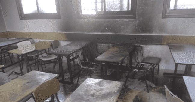 أحرق مستوطنون، فجر اليوم الثلاثاء، صفا مدرسيا في مدرسة عينابوس الأساسية جنوب نابلس.