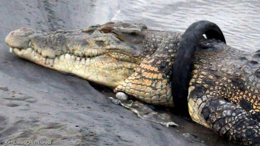 مكافأة مالية لمن ينقذ تمساح من إطار عالق حول عنقه