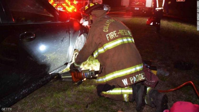 وذكر بيان إدارة الإطفاء أن فريق الإنقاذ طلب رافعة هيدروليكية لإزاحة السيارة عن اليد الأخرى، وهو ما تم بالفعل لاحقا.