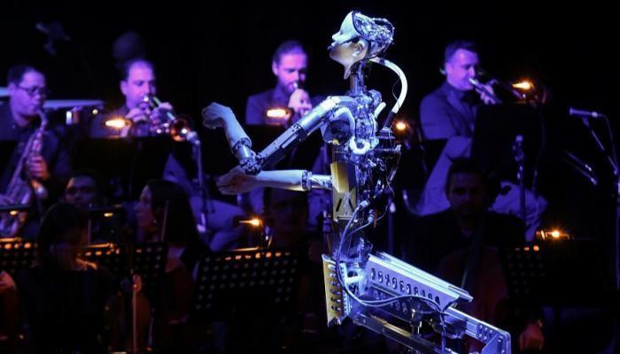 لا يمسك المايسترو الواقف على منصته عصا ولا يرتدي معطفا رسميا ولا يملك مقطوعة موسيقية مكتوبة، ومع ذلك يثير الرجل الآلي (أندرويد ألتر 3) زوبعة وهو يقود عازفي أوركسترا سمفونية.