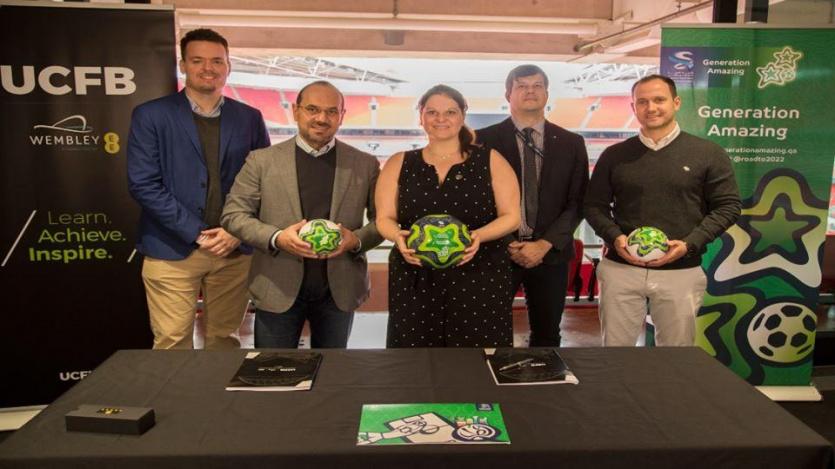 وفي إطار هذه الشراكة بين الجيل المبهر وأكاديمية الأعمال التجارية لكرة القدم (UCFB)، المعروفة عالمياً والمتخصصة في التعليم الرياضي والتي لها مقار جامعية في استاد ويمبلي واستاد الاتحاد، سيُسخر طلبة أكاديمية الأعمال التجارية لكرة القدم (UCFB) مبادئ وأنشطة مبادرة كرة القدم من أجل التنمية لمعالجة قضايا اجتماعية في مختلف دول العالم. علاوة على ذلك، سيسعى الطرفان لابتكار سبل جديدة لتطوير مسارات وفرص تعليمية للمشاركين والمستفيدين تحت مظلة برنامج الجيل المبهر. ستمتد هذه الشراكة لأربعة أعوام بعد بطولة كأس العالم لكرة القدم التي تستضيفها قطر لأول مرة في منطقة الشرق الأوسط عام 2022.