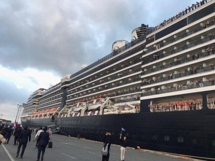 ورست السفينة (إم.إس ويستردام) التي تقل 1455 راكبا وطاقما من 802 فرد في سيهانوكفيل مساء أمس الخميس بعد أن توقفت قبالة الشاطئ في الصباح الباكر للسماح لمسؤولين كمبوديين باعتلائها وأخذ عينات من ركاب يعانون من أعراض مرضية أو أعراض تشبه الإنفلونزا.