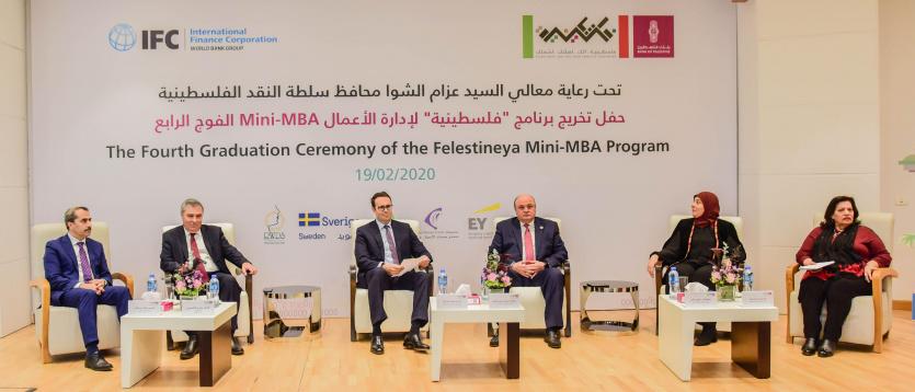 احتفل بنك فلسطين يوم الأربعاء الموافق 19/02/2020 بتخريج الفوج الرابع من خريجات برنامج فلسطينية لإدارة الأعمال Mini MBA كجزء من نشاطات البنك واستراتيجيته لتعزيز دور المرأة وتمكينها من الدخول في الحياة الاقتصادية والاجتماعية، وتخرج خلال الحفل 35 سيدة أعمال وريادية فلسطينية من بين 80 سيدة تقدمن للمشاركة في دورة الفوج الرابع للبرنامج.