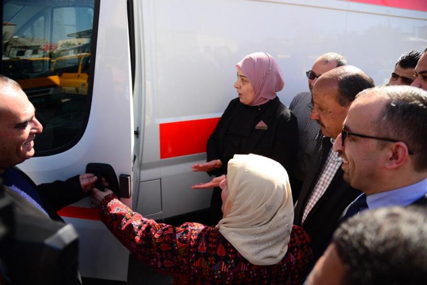 بتبرع من الرئيس محمود عباس، سلمت محافظ رام الله والبيرة ليلى غنام ومسؤولة وحدة المساعدات الإنسانية في الرئاسة اللواء رائدة الفارس اليوم الخميس، سيارة إسعاف مجهزة بالكامل للجنة الشعبية في مخيم الجلزون .