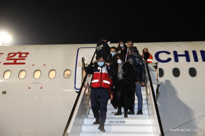 فقد هبطت طائرة إيرباص أيه- 350 عريضة البدن، تابعة لخطوط "تشاينا إيسترن" الجوية الصينية، في حوالي الساعة 22:30 بالتوقيت المحلي في منطقة البضائع بالمطار، وكان في استقبالها حشد من الخبراء المحليين من الصليب الأحمر الإيطالي ومسؤولون من وزارة الخارجية الإيطالية ومندوبون من السفارة الصينية لدى إيطاليا.