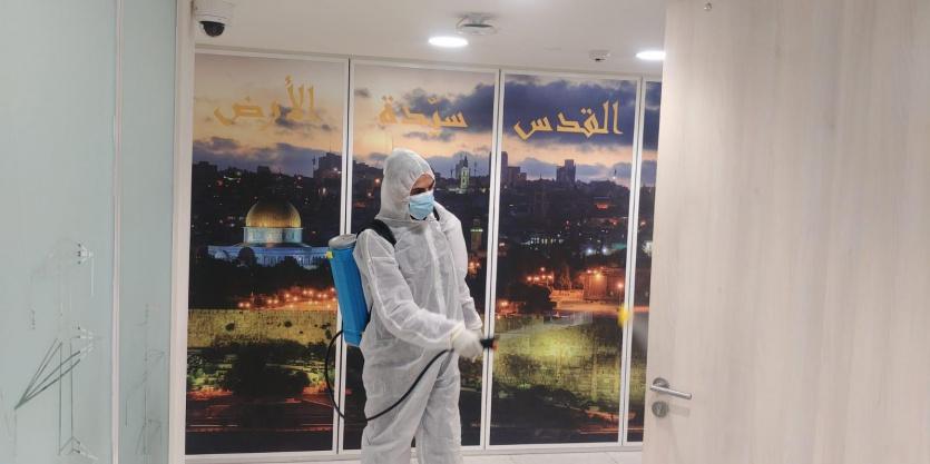انسجاماً مع خطط الطوارئ لمنع انتشار فيروس "كورونا" أجرى فرع شركة كهرباء محافظة القدس، عمليات تعقيم شاملة لكافة أرجاء الفرع، وذلك ضمن إجراءات تطبيق معايير السلامة العامة والوقاية التي اتخذتها الشركة في جميع فروعها ومقراتها.