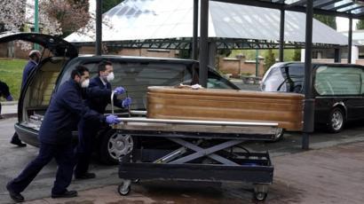 ولكن عندما يشتبه في أن سبب الوفاة له علاقة بفيروس كورونا، يُترك المتوفى في سريره إلى حين استلامه من قبل طاقم خدمة دفن مزود بمعدات مناسبة. وفي مدريد، التي شهدت أكبر عدد من حالات الإصابة والوفاة، قد يستغرق الأمر ما يصل إلى 24 ساعة، بحسب مسؤولين.