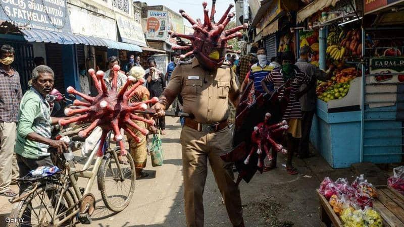 وقد تميزت الشرطة الهندية خلال الأسابيع الأخيرة بطرقها "الغريبة" في كثير من الأحيان لمكافحة انتشار فيروس كورونا.