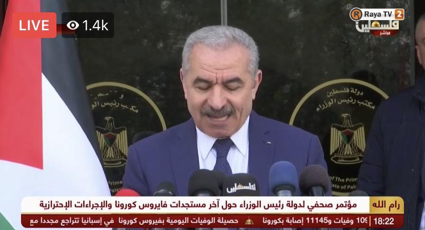 وأضاف اشتية في مؤتمر صحفي عقده مساء اليوم الاثنين، حول آخر تطورات فيروس كورونا والاجراءات الاحترازية في فلسطين، أن جميع المصابين بالفيروس تتم معالجتهم مجانا، وقدرتنا على التعافي ستتحقق خلال فترة زمنية ليست طويلة.
