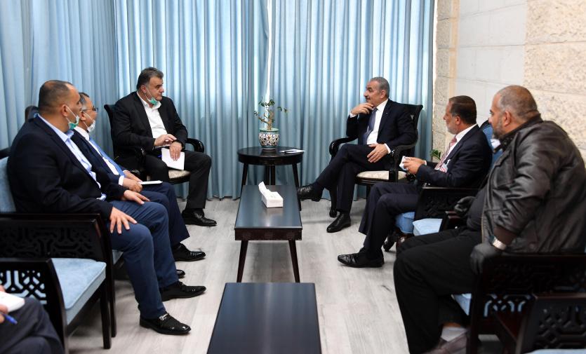 التقى رئيس الوزراء محمد اشتية، اليوم الأربعاء في مكتبه بمدينة رام الله، الأمين العام لاتحاد نقابات عمال فلسطين شاهر سعد، وبحث معه عددا من القضايا التي تهم العمال سواء الذين يعملون في الأراضي الفلسطينية، أو داخل إسرائيل، في ظل أزمة فيروس "كورونا".