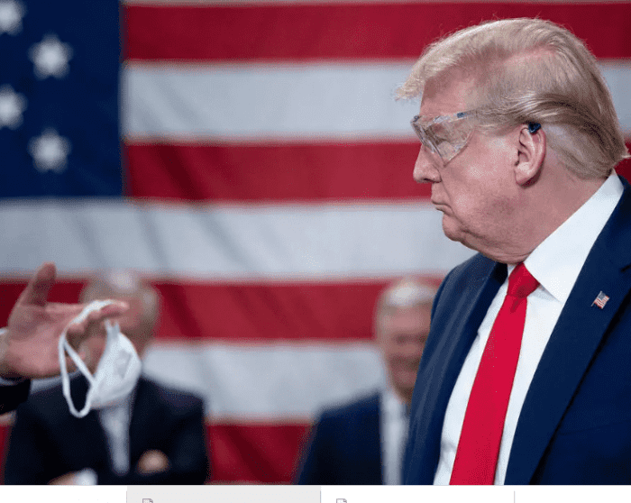 وأثار ترامب جدلا خلال زيارتين سابقتين لمصنعين بعدما ظهر بدون قناع فيما كان كل من حوله يضع واحدا. ولم يتم تصوير دونالد ترامب مطلقا وهو يضع قناعا.