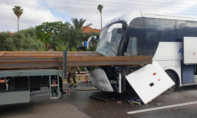 وفي التفاصيل، وقع حادث طرق بين شاحنة وحافلة بالقرب من مفرق قرية عرعرة في شارع رقم 65 وادي عارة باتجاه الجنوب.
