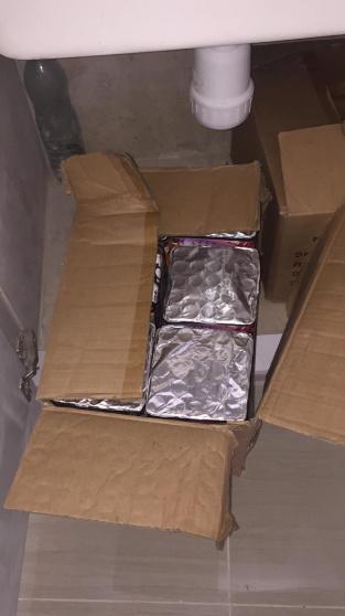 خلال التفتيش ضبط افراد الشرطة داخل خزانة المطبخ مواد مشتبه كمخدرات خطرة من نوع الحشيش بوزن 2 كيلو غرام كما وضبطوا 5 قطع اجزاء سلاح و17 خلية متفرقعات (15 متفرقعه لكل خلية) التي تعتبر مواد متفجرة ومن شأنها ان تؤدي الى اضرار لمستخدمها مع تفعيلها دون تصريح لحيازتها.