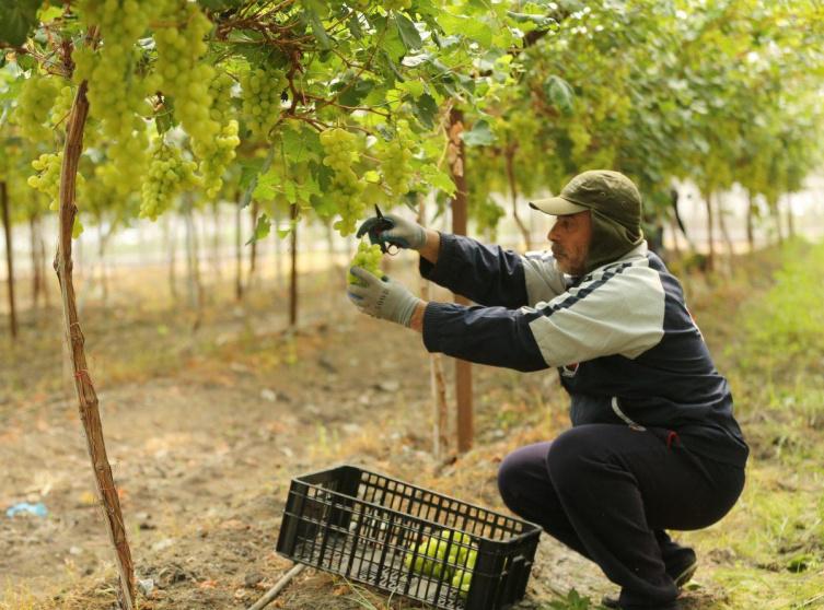 على بعد أمتارٍ معدودة من جدار الضم والتوسّع، وفي أقصى شمال الضفة الغربية بين سهول قرية عين البيضا، تتزاحم أيدي العمّال لجني محصول العنب اللا بذري المبكّر تحت آلاف الأمتار الممتدة من الكروم.