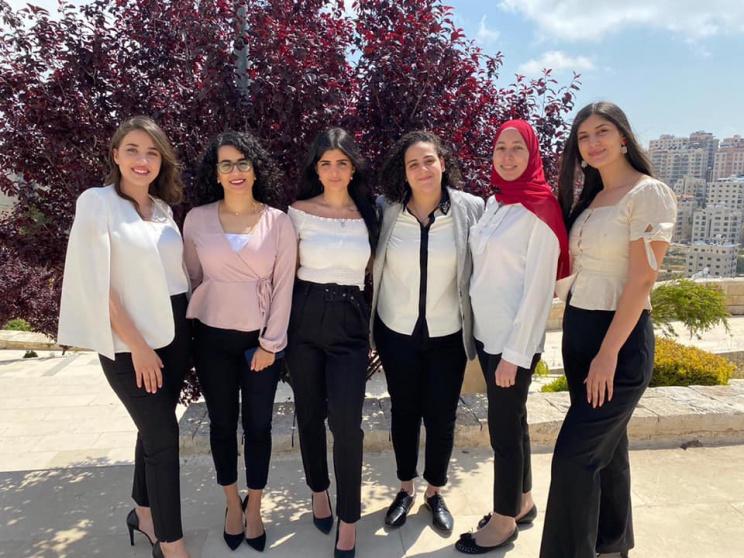 وضم الفريق أربع طالبات من دائرة القانون في كلية الحقوق والإدارة العامة، هن آية عويضة وايليا أبو حجلة وديالا أبو غربية وربى سراج، واللواتي تدربن مع الأستاذة ميلينا أنصاري ومساعدتها هاجر صبيح. وتشكلت المسابقة من مرحلتين، المرحلة الكتابية والمرحلة الشفوية، والتي ألغيت بسبب جائحة كورونا.