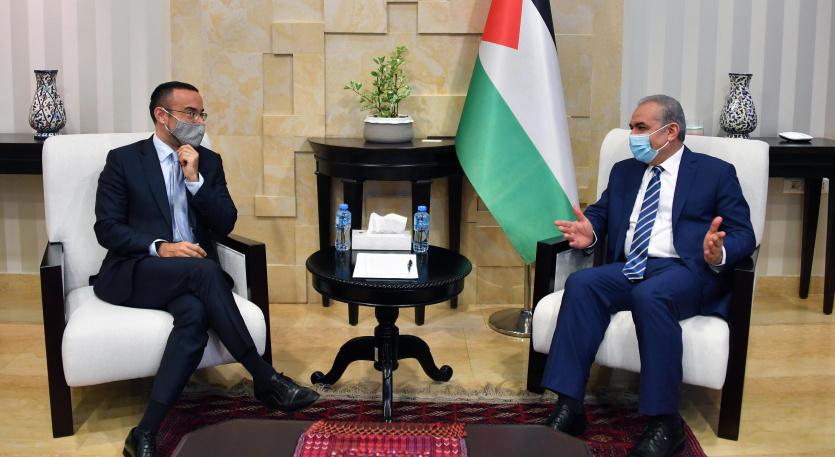 كما استقبل رئيس الوزراء القنصل الإيطالي العام جوسيبي فيديلي، وبحث معه اخر التطورات السياسية، ومواجهة مخططات الضم الإسرائيلية، واهمية وجود ضغط دولي جاد على إسرائيل والولايات المتحدة لوقف هذه المخططات.