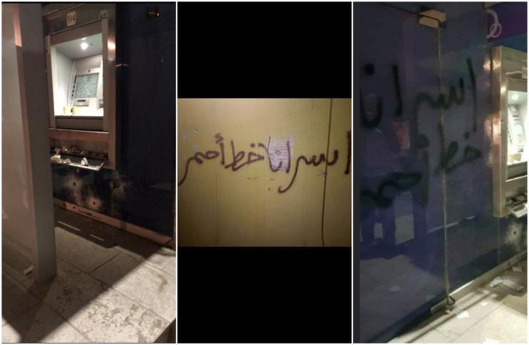 وتعرّض الصراف الآلي لأضرار بعد استهدافه بالرصاص، وكتب المهاجمون عبارات مثل "أسرانا خط أحمر".