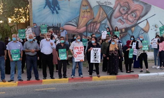 ونظمت التظاهرة في أعقاب جريمة قتل وفاء جوهر مصاروة (40 عاما) التي قتلت على يد زوجها في جريمة طعن داخل منزلهما الخميس الماضي.