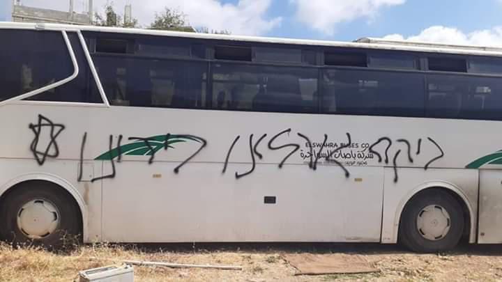 مستوطنون يعطبون اطارات ويخطون شعارات عنصرية في اللبن الشرقية