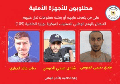 نشرت وزارة الداخلية والأمن الوطني في غزة، الأحد، صوراً قالت إنها للمتهمين في جريمة مقتل الاسير المحرر جبر القيق بمدينة رفح جنوب قطاع غزة.