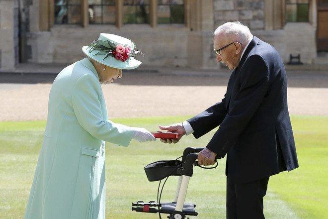 منحت الملكة إليزابيث الكابتن توم مور، البالغ من العمر 100 عام، لقب ”السير“ يوم أمس الجمعة اعترافا بجهود الرجل الذي أصبح بطلا قوميا في بريطانيا بجمعه ملايين الجنيهات الاسترلينية لصالح العاملين في مجال الصحة خلال جائحة كوفيد-19.