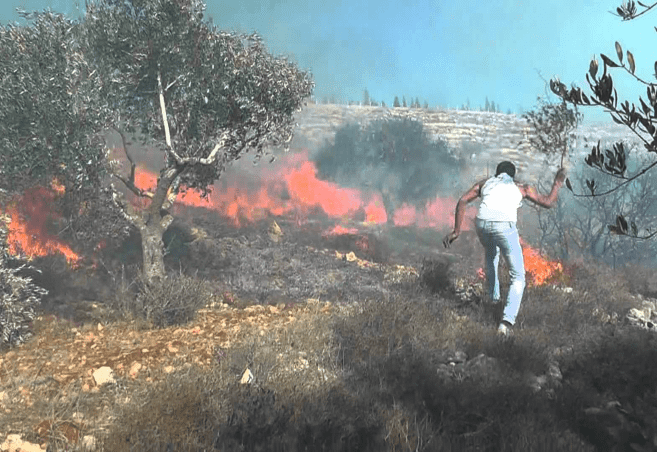 الاحتلال يتسبب باحتراق 14 دونما في المغير