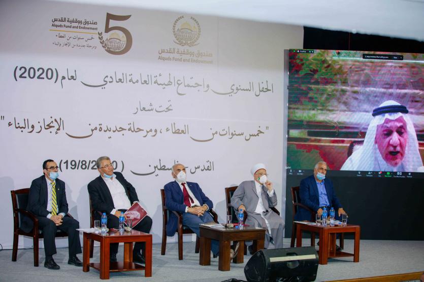 عقد صندوق ووقفية القدس اجتماع مجلس إدارته وهيئته العامة العادي السادس إضافة لفعاليات الحفل السنوي تحت شعار " خمس سنوات من العطاء ، ومرحلة جديدة من البناء والإنجاز " في حرم جامعة القدس وعبر التقنية المرئية.