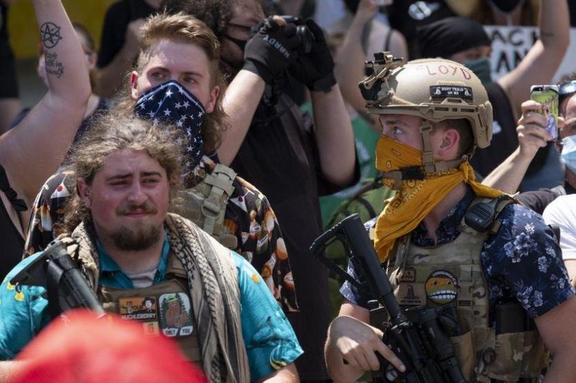 وأشارت وزارة العدل الأميركية إلى أن السلطات رصدت سولومون وتيتر اللذين يقولان إنّهما عضوان في "بوغالوس بويْز"، خلال التظاهرات.