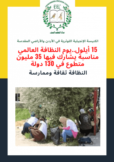أصدر مركز التعليم البيئي / الكنيسة الإنجيلية اللوثرية في الأردن والأراضي المقدسة، بيانًا صحافيًا لمناسبة يوم النظافة العالمي، الذي يصادف سنويًا في 15 أيلول.