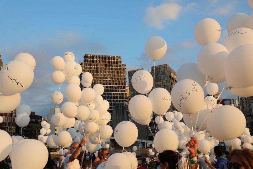 بالبالونات البيضاء..بيروت تحيي ذكرى انفجارها الكارثي