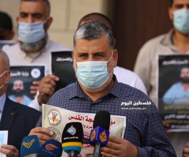 جاء ذلك خلال وقفة تضامنية ومؤتمر صحفي نظمته وزارة الأسرى والمحررين ومؤسسة مهجة القدس، تضامناً مع الأسير الإداري البطل الأخرس والمضرب عن الطعام منذ 74 يوماً، في مقر وزارة الأسرى بغزة .