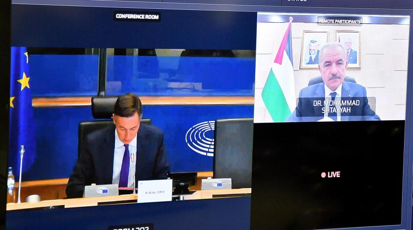 دعا رئيس الوزراء محمد اشتية، الاتحاد الأوروبي إلى لعب دور فاعل في أي عملية سياسية مستقبلية لكسر الأمر الواقع الذي تعيشه القضية الفلسطينية بسبب إجراءات الاحتلال والاحتكار الأميركي لوساطة العملية السلمية، من خلال مؤتمر دولي تشارك فيه جميع الأطراف.