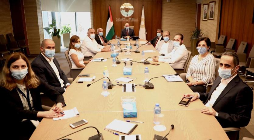 استقبل معالي محافظ سلطة النقد السيد عزام الشوا اليوم بمقر سلطة النقد في محافظة رام الله والبيرة، وفداً من جمعية رجال الأعمال الفلسطينيين-القدس برئاسة رئيس الجمعية المهندس أسامة عمرو، بحضور عدد من المديرين التنفيذيين في سلطة النقد، وذلك في إطار التفاعل مع ورقة رؤية جمعية رجال الأعمال الفلسطينيين للخروج من الأزمة الاقتصادية والمالية التي تعاني منها فلسطين جراء الأزمات الراهنة وفي مقدمتها تفشي فيروس كورونا، وعدم استلام أموال المقاصة من الجانب الإسرائيلي، وتداعياتها على الاقتصاد الوطني. واستعرض معالي المحافظ أمام الوفد إجراءات سلطة النقد والجهاز المصرفي، لمواجهة الآثار المترتبة على الأزمات الراهنة، وإسهامها الفعلي في التخفيف من تداعيات هذه الأزمات على القطاعات الاقتصادية المختلفة، جنباً إلى جنب مع الحفاظ على حقوق جميع الأطراف وتعزيز الاستقرار المالي في فلسطين.