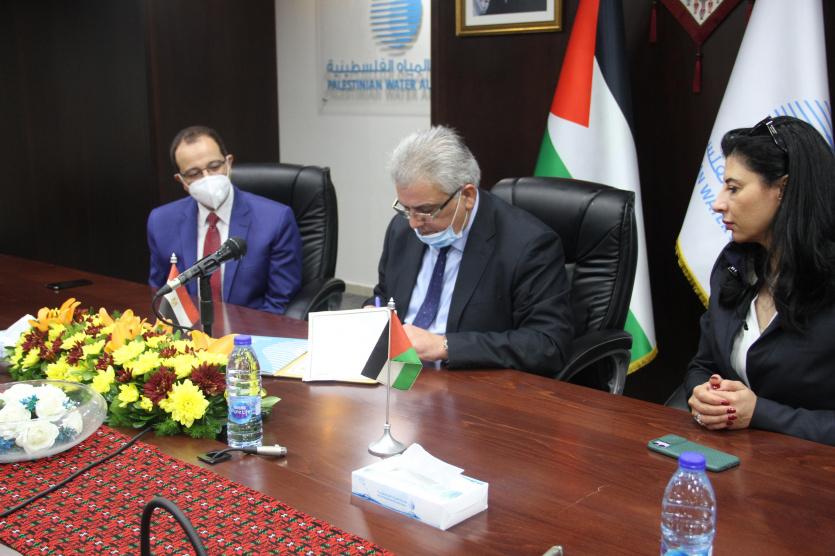 ووقع عن الجانب الفلسطيني، وفق بيان لسلطة المياه، وزير المياه مازن غنيم، وعن الحكومة المصرية وزير الموارد المائية والري محمد عبد العاطي، وذلك بحضور سفير جمهورية مصر العربية لدى دولة فلسطين عصام عاشور، ووكيل وزارة الخارجية والمغتربين الفلسطينية أمل جادو وسفير فلسطين لدى جمهورية مصر العربية ذياب اللوح.