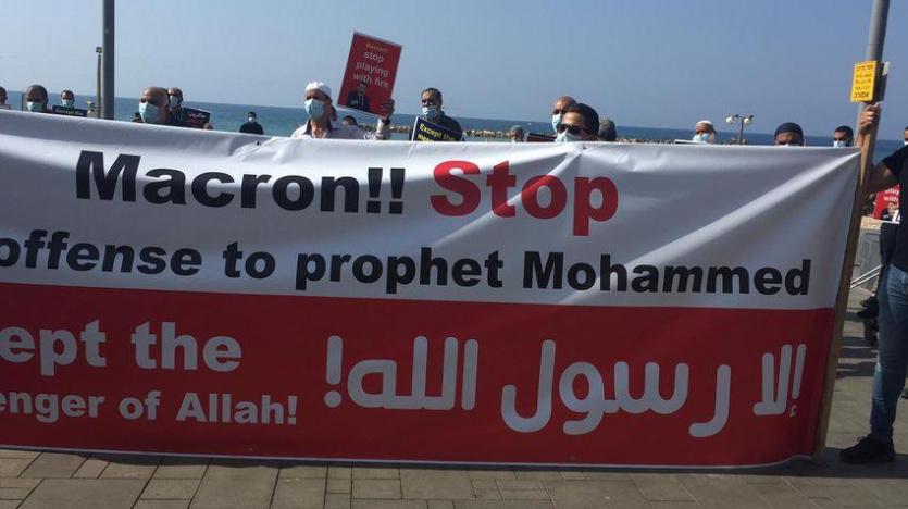وتصاعدت الاحتجاجات في عدد من الدول العربية والإسلامية تنديدا بنشر الرسوم المسيئة للنبي محمد، ودعم الرئيس الفرنسي إيمانويل ماكرون الرسوم الكاريكاتورية المسيئة.