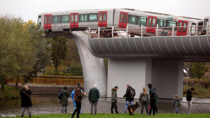 نجا قطار مترو هولندي من كارثة بعدما اخترق حاجز توقف ليستقر عند مجسم عملاق لذيل حوت، ما جنب سائق المركبة التي كانت خالية من الركاب مصيرا أسود محتما.