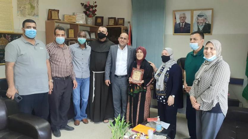 كرمت مسؤولة ملف المساعدات الانسانية في الرئاسة اللواء رائدة الفارس، ومدير مركز بيت الأجداد التابع لوزارة التنمية الاجتماعية حمدي حلبية، المسنة اليونانية إستراتيا منولي، المتطوعة منذ سنوات في المركز لخدمة ومساعدة النزلاء فيه.
