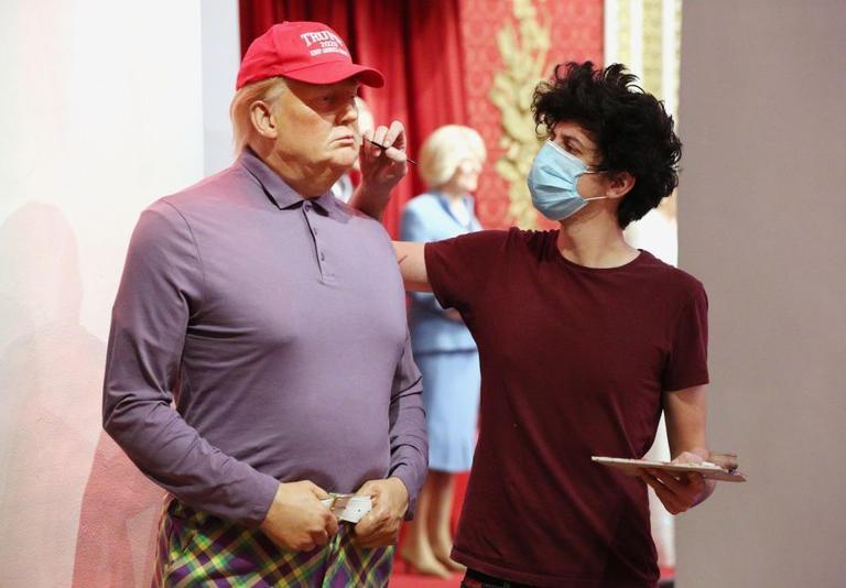 قررت إدارة متحف مدام توسو الشهير في لندن تبديل ملابس تمثال دونالد ترامب الشمعي، بطقم رياضي لممارسة لعبة الغولف، في خطوة رمزية تشير إلى انتهاء فترة حكمه.
