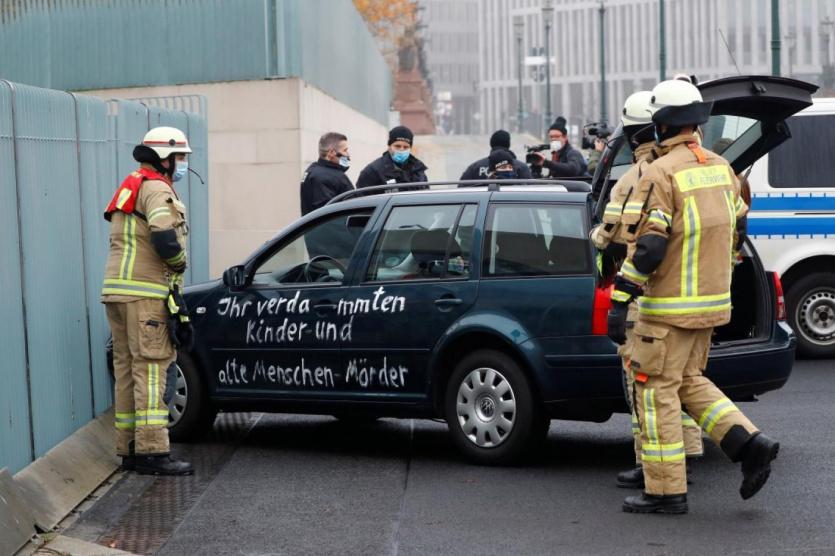قال شاهد عيان لـ"رويترز" إن سيارة مكتوبا عليها عبارات على الجانبين اصطدمت ببوابة مقر المستشارة الألمانية آنجيلا ميركل في برلين اليوم الأربعاء.