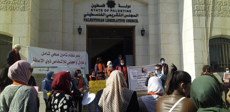 جدير بالذكر أن الأشخاص ذوي الإعاقة يخوضون حراكاً مطلبياً عادلاً من أجل المطالبة بنظام تأمين صحي مجاني شامل وعادل، باعتصامهم أمام مقر المجلس التشريعي منذ قرابة الشهر، بدون أن يتوصلوا لحل عادل لمطالبهم.