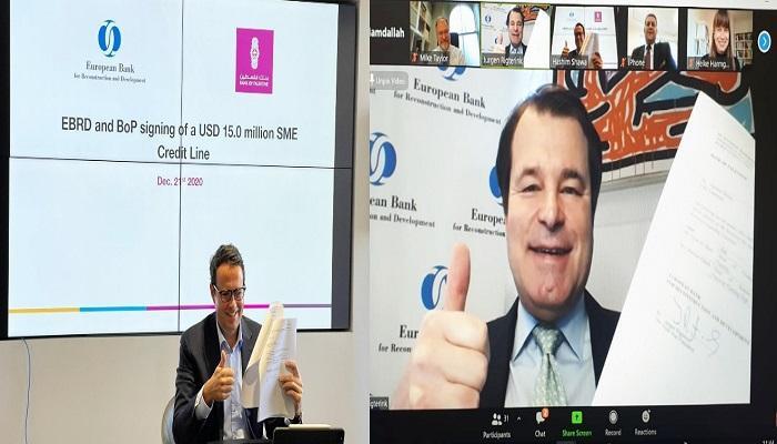 وقع البنك الأوروبي لإعادة الإعمار والتنمية، وبنك فلسطين، اليوم الاثنين، اتفاقية تعاون مشترك لدعم المشاريع الصغيرة ومتناهية الصغر ورائدات الأعمال في فلسطين، عبر تقديم حزمة تمويل بقيمة 15 مليون دولار أميركي.