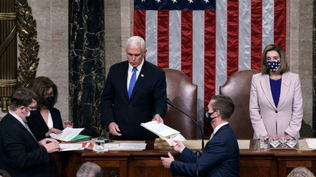وصدق المشرعون بعد عودتهم إلى مبنى الكابيتول على فوز بايدن في الانتخابات، بعد ساعات من اقتحام أنصار ترامب المبنى في أعمال شغب أسفرت عن وفاة أربعة أشخاص.