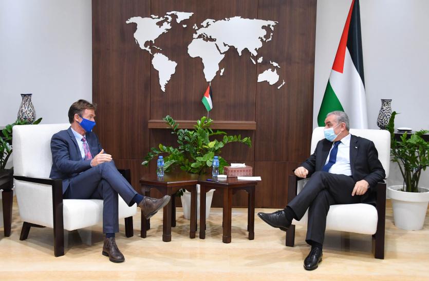بحث رئيس الوزراء محمد اشتية، مع ممثل الاتحاد الأوروبي لدى فلسطين سفين كون فون بورغسدورف، آخر التطورات المتعلقة بعقد الانتخابات العامة في فلسطين، وسبل دعمها من قبل الاتحاد الأوروبي.