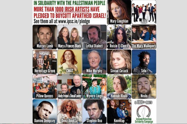 وقع اكثر من ألف فنان وفنانة من إيرلندا على تعهد بمقاطعة دولة الاحتلال الإسرائيلي ثقافياً، حيث بدأت الحملة بمبادرة من مؤسسة "التضامن الإيرلندي الفلسطيني" IPSC قبل عشر سنوات، وهي خطوة بارزة في دعم حركة مقاطعة إسرائيل وسحب الاستثمارات منها وفرض العقوبات عليها (BDS).