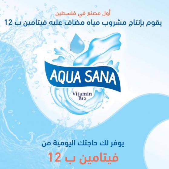 وأكدت إدارة المصنع أنه بعد عمل العديد من الدراسات العلمية ظهرت النتائج أن أغلب المجتمع الفلسطيني يعانون من نقص فيتامين B12، ولهذا أتى إطلاق مشروب مياه "أكوا سانا" لسد احتياجات المجتمع الفلسطيني من ناحية توفير مشروب مياه مضاف إليه فيتامين B12.