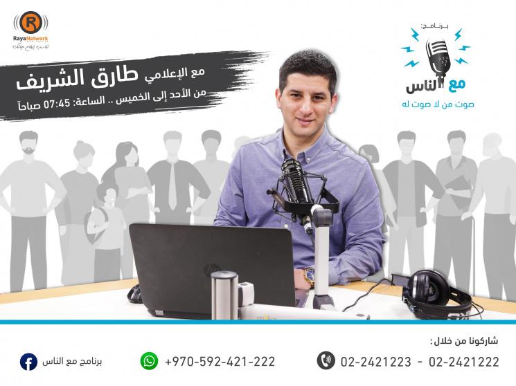 ينضم يوم الأحد القادم، الإعلامي طارق الشريف لفريق عمل "رايـــة" مقدما لبرنامج "مع الناس" الصباحي الذي يعتبر منبرا حرا ويوميا للمواطنين في فلسطين ويعمل كجسر للتواصل بين المواطن والمسؤول.