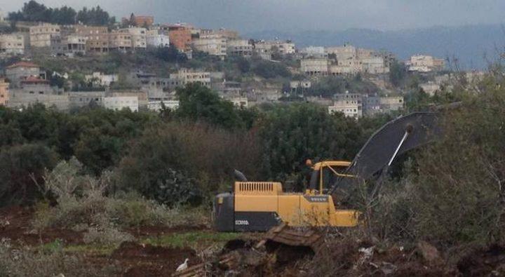 جرف آليات تابعة لمستوطني مستوطنة "خارصينا"، اليوم الثلاثاء، أرضا زراعية في منطقة البقعة شرق الخليل.