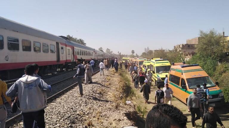 وكانت وزارة الصحة والسكان في مصر، قد أعلنت عن مصرع 32 شخصا وإصابة 108 آخرين، في حادث اصطدام قطارين بمركز طهطا في محافظة سوهاج.