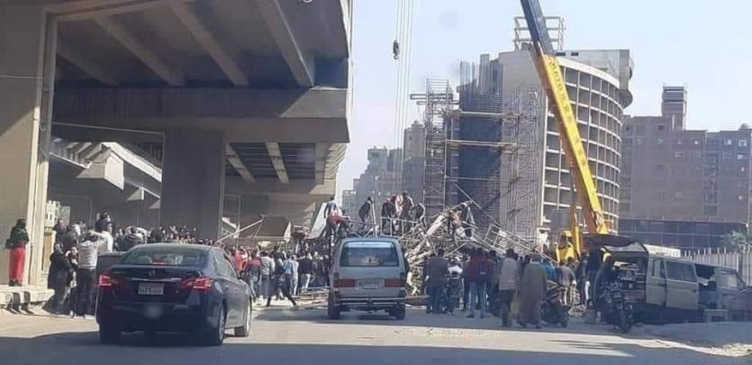 فيديو وصور.. انهيار جزئي لسقالة في جسر قيد الإنشاء بالقاهرة